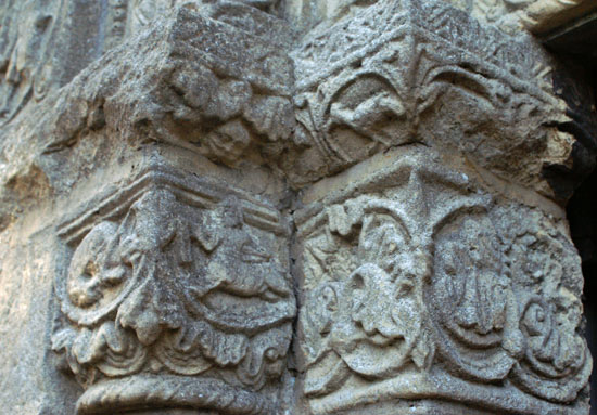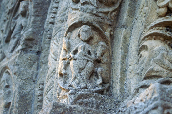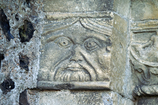 Each of the door jambs has a decoration of its own - in both cases a curiously flat image that almost seem like afterthoughts by one of the masons. On the left is another grinning cat and on the right a bearded man’s face.