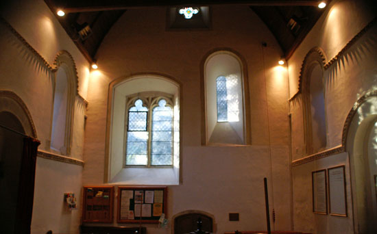 The chancel with triple lancet window, foretelling the Early English style of triple lancet to come.