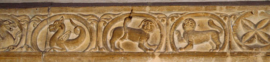 The friezes are some of the highlights of the church because they are beautifully preserved. In these two we have a whole sequence of creatures depicted.