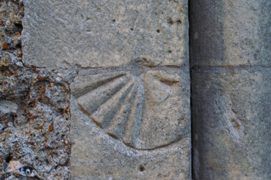 The outer circle of decoration has figures from mediaeval life. The bishop figures below is believed by many to be St Thomas a Becket who was murdered at Canterbury Cathedral in 1170. The date certainly makes this theory plausible, and Barfreston is on the “Pilgrim’s Route” to Becket’s shrine.