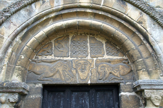 Having roundly derided the Victorians for this peculiar piece of extension-building, we have to be mighty glad that they left the Norman structure more or less intact. It dates from about 1130. The finest remnant is the north door. Its tympanum is a real treasure. It isn’t fine and it isn’t subtle but it is wonderfully vibrant and uncompromising; and surely Scandinavian in its influence. Monsters flank a human head and one of the monsters has another human head in its jaws. This is surely an allegory for evil devouring we sinners, but the monsters are a cheerful-looking lot, happy in their work and just enjoying a good meal. It reminds me of that scene from “The Life of Brian”. “Next. Crucifixion? Good. Out of the door, line on the left, once cross each…” The monsters are just - you know - doing their job! Somebody has to do it.