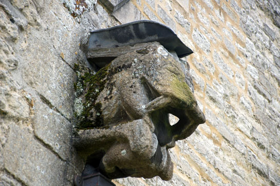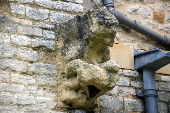 Left: One of a number of entertaining gargoyles that adorn the south side. They are, of course, Victorian rather than mediaeval. Right: This is a mediaeval gargoyle where the rooflines of the Norman and Victorian naves meet at the west end.