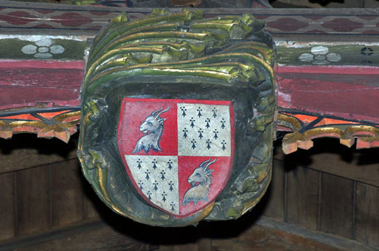 Left: This is believed to be Cardinal Morton who is said to have funded this splendid roof. Right: The cardinal’s arms.