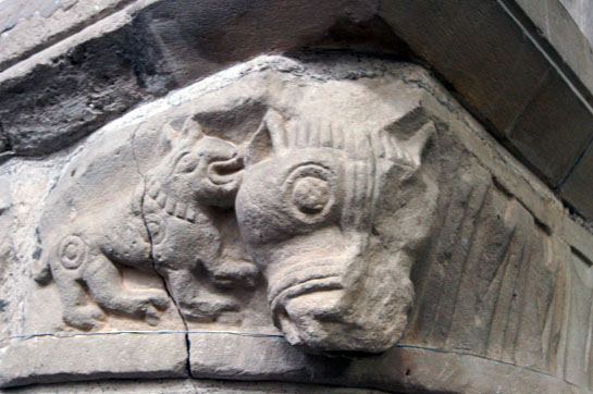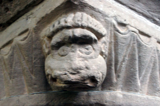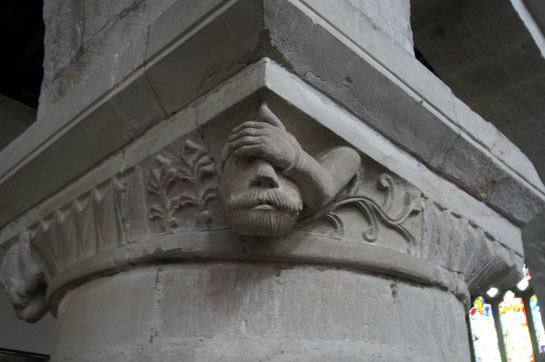 Much to my chagrin I found after my visit that I had been having a bit of a “bad camera” day - one of those where the complexity of my ultra-smart Sony a55 DSLR outwitted me. Some of my pictures of the carvings on the south aisle capitals left a lot to be desired, but these four are fairly passable. Left and Right we have two examples of men apparently suffering from toothache. Mind you, this is a pose I sometimes adopt when I’ve done something particularly dolt-ish - like making the wrong exposure settings, for example…