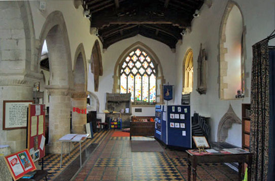 Despite the usual speculation that there was an even older church here, the earliest fragments of the present structure date from around 1050, late in the Anglo-Saxon period. This was a cross-shaped church. In the c12 a south aisle was added and the font is believed also to date from this period. The church guide suggests the mid c12 but the pointed arches of the aisle are in Transitional style and would support a rather later decade of the century. The capitals are square and decorated with amusing carvings.