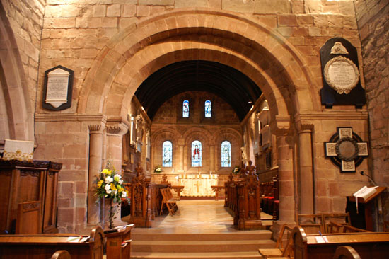 Left: The view through the chancel arch to the chancel itself. The arch is beautifully preserved but almost austere in its plainness. Right: The view towards the west end, with the Gothic south aisle arcade to the left and the partly Norman north arcade to the right.