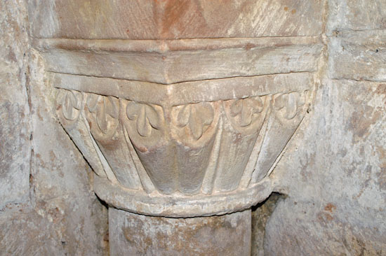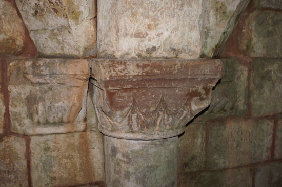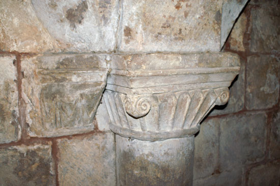 The capitals within the crypt are hefty and crude as is normal in crypts, but they show surprising variety. There is a nice ionic design (top left), scallop design (top right), a rather more ornate scallop shape (bottom left) and water leaf design (bottom right).