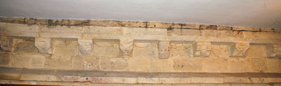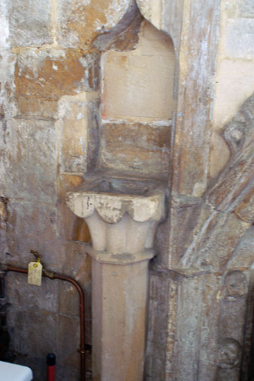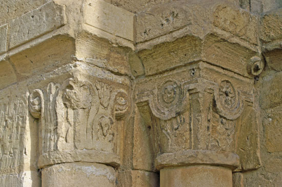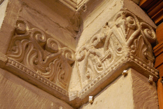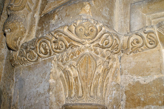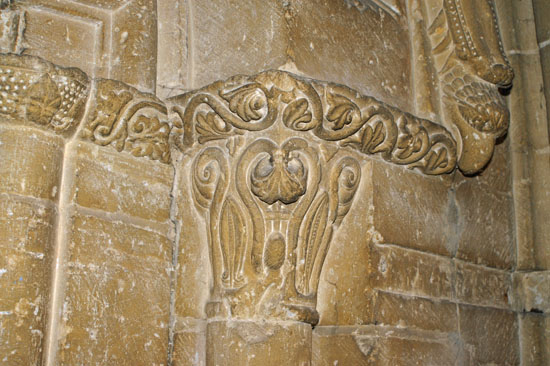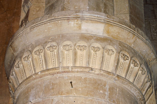 The capitals on the west door (above) have stylised designs rather than symbolism. Note also the slimmer, more mannered proportions than are found in many churches of this period. Restraint is the order of the day.