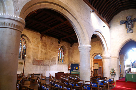 Today’s church largely dates from around 1170. The Church Guide sees is as “Transitional” (that is, influenced by both Norman and Early English gothic), although Norman predominates.