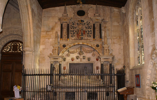 Left: Foliage design on one of the arcade capitals. To me the design is too small for such a mighty structure. Right: The c17 tomb of Richard and Margaret de Vere in the south chantry chapel.