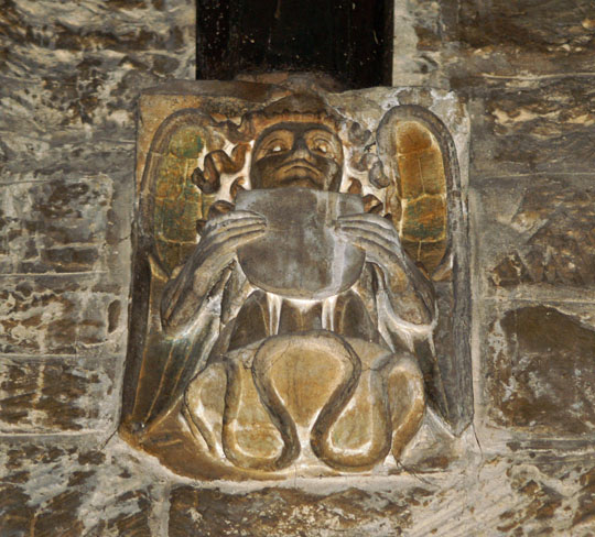 I am afraid that I like this grotesque image near the chancel arch more than all of the magnificent Rutland monuments! Note the tiny “wings” on the dragon! The dragon looks benign enough, but I don’t think its intentions are friendly! What does this represent? Lies perhaps?