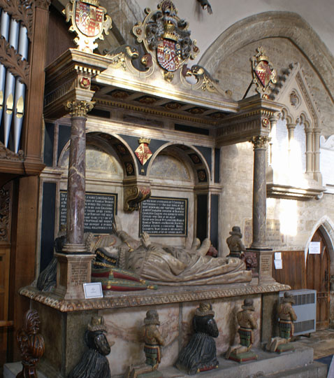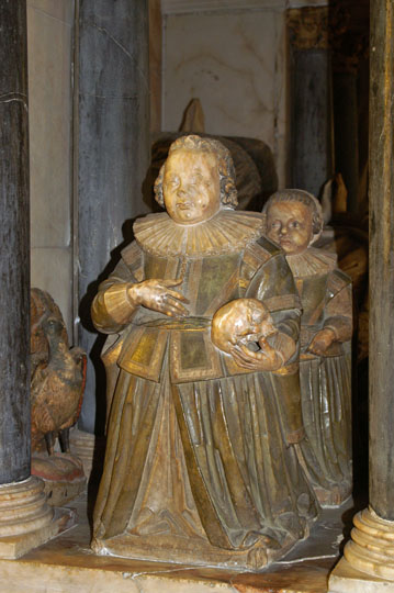 The monument (left) of the 4th earl John (1559-1588). He was earl for only one year before his death. Above is detail from the canopy.