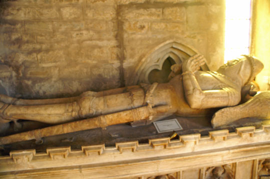 The tomb of the second earl, Henry Manners (1563), is the first thing that greets you in the chancel. The effigies are, remarkably, asleep under a dining table - or altar table - while the “weepers” kneel above them. Henry’s breastplate is uniquely made of laminated plates, rather than being a single piece, and in his hands he carries a book as well as his sword.