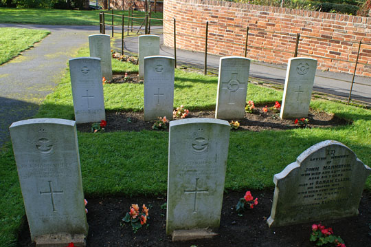 In the churchyard is this cluster of 8 war graves for Commonwealth airmen killed during World War II. RAF Bottesford was a Bomber Command base flying initially Avro Manchester and later the much more successful Avro Lancaster aircraft. These men died very young and, quite possibly, very painfully. This is a moving place.