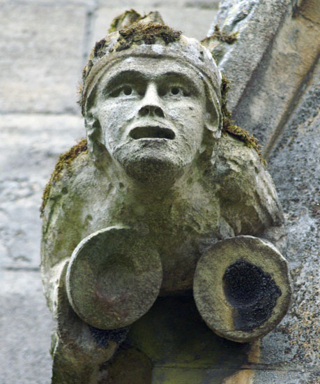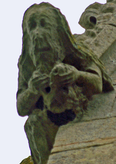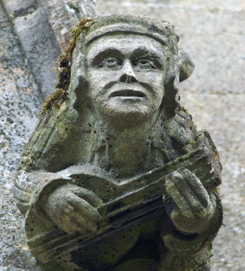 With the exterior carvings - apart from the frieze of which a huge amount more anon) - I can only show a selection. I always love to see village musicians and here are three, all adorning the many pinnacles on this church. It is a popular theme on mediaeval churches. The faces seem to have been carved in some detail - but then again these are large-ish figures. For the most wonderful portrayal of a village see the frieze at Adderbury in Oxfordshire.