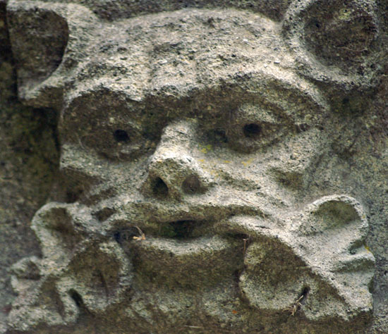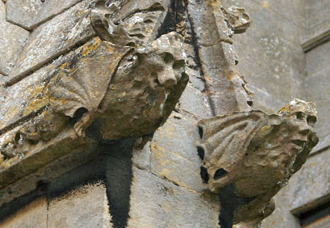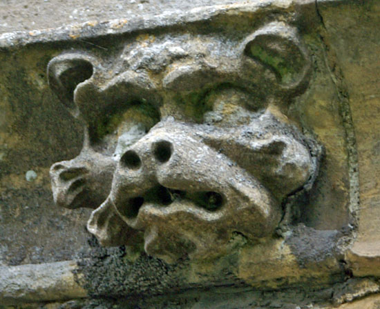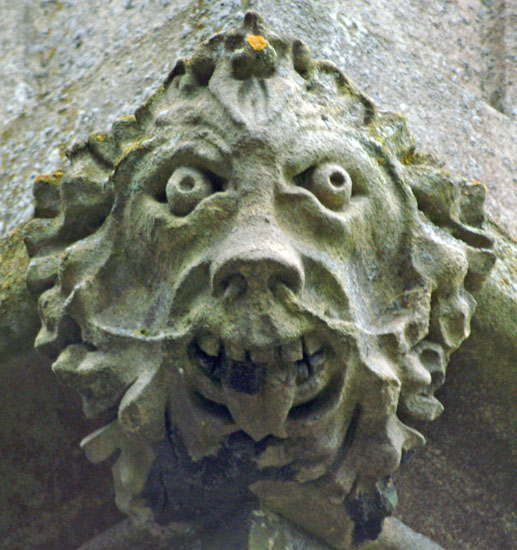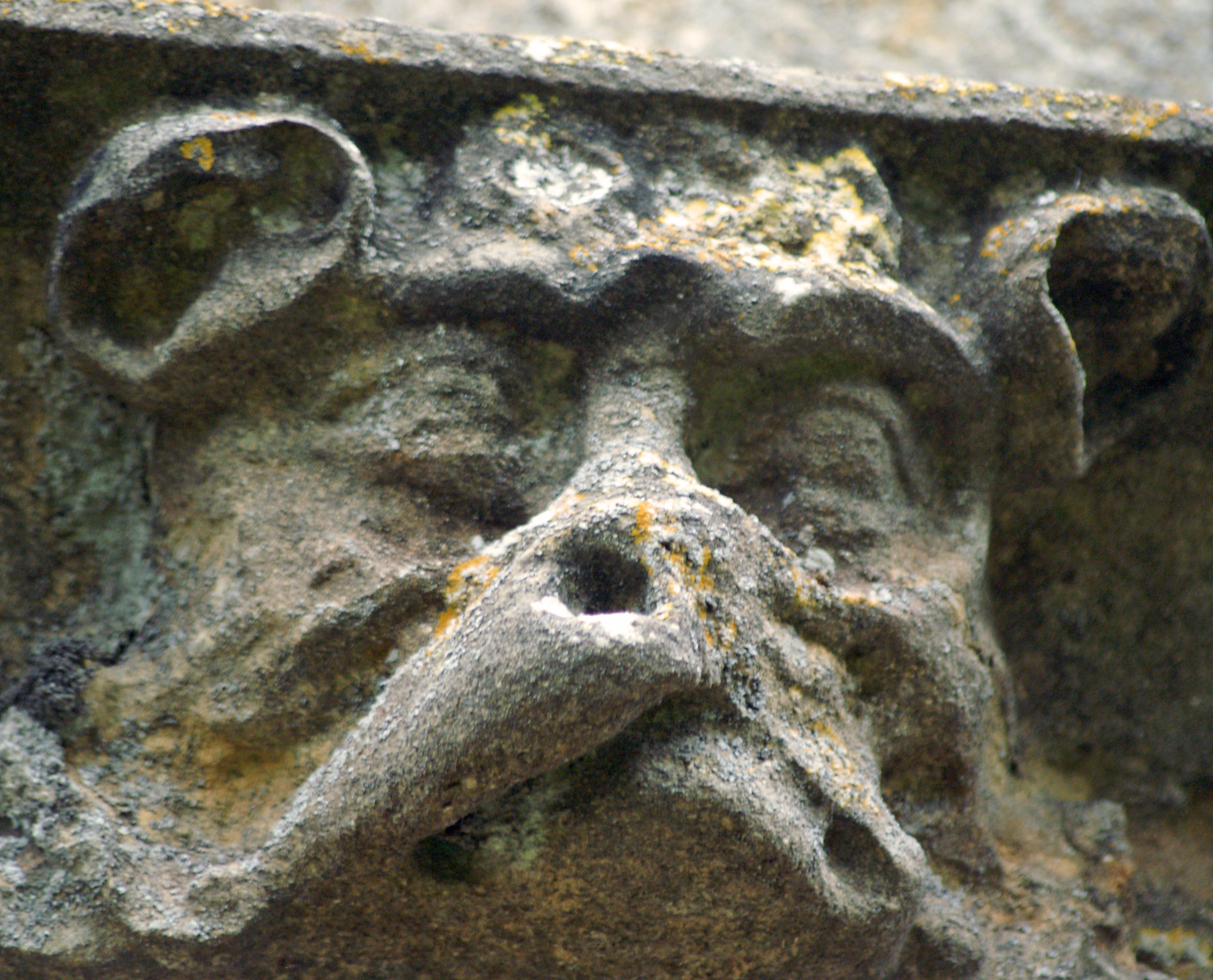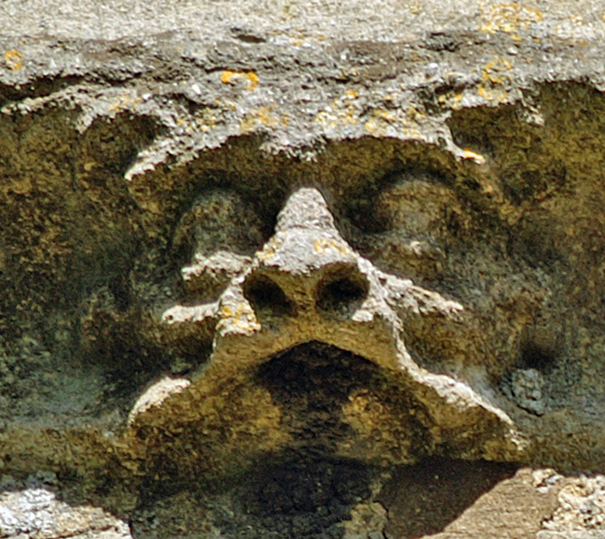 Oakham is bedecked with friezes under almost every parapet. It is, however, a somewhat repetitious one. With the exception of some on the south west aisle carved by the “Demon Carver” (see also Ryhall Church) and some on the South Porch the frieze is mainly a series of fleurons and grotesque heads. As many as half of those dozens of heads are of a distinctive pattern: they have what I characterise as cow-like faces and ears. You can form your own view of what they look like and I won’t argue with you but they are undoubtedly distinctive. Here are some examples.