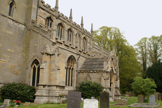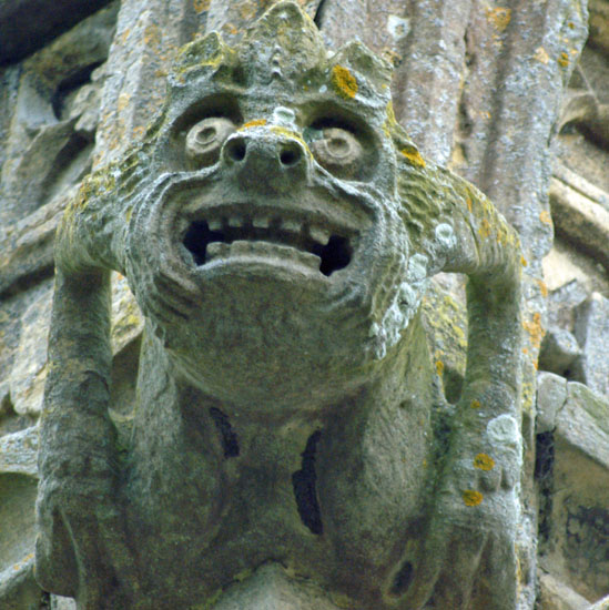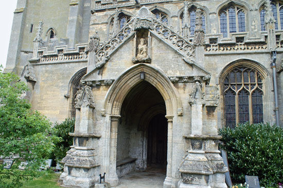 I have made this picture large to give some impression of the scale of the carved decoration on the outside of this church. The frieze extends beneath the aisle parapet, It continues around the porch (including on the sides not visible). The balustrade is ornate and surmounts clerestory as well as aisles. Above the porch door is a coat of arms. The soffits of the porch doorway and the aisle windows have carvings. Anything that can reasonably decorated has been decorated!