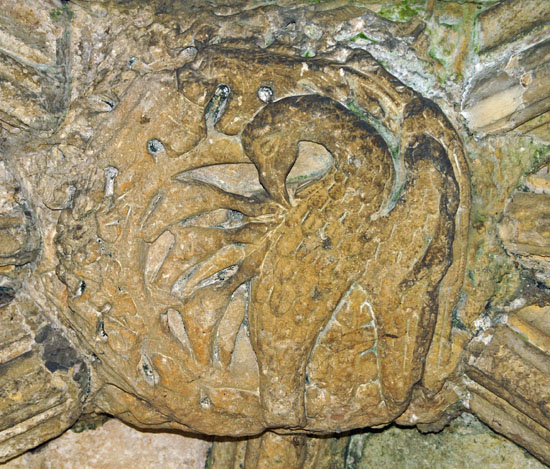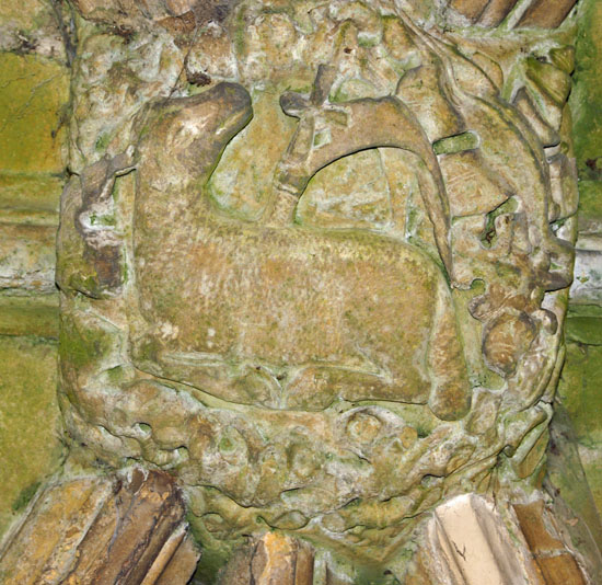 Three of the roof bosses in the porches. To the left is the Pelican in her Piety. Centre is a rose that symbolises the Virgin Mary. To the right is a particularly lovely “Agnus Dei” - the Lamb of God.