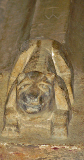 The interior of Brant Broughton has almost - but not quite - the same denisty of the carvings of the exterior! Here is a selection, including the two nice corbels on the right. On the second photograph from the left note the mason’ mark - a “TW” monogram - above the uncharacterisitcally crudely-carved dog. Mason’s marks were not, incidentally, a matter of vanity: it was the way the master mason kept a check on the quality of the work of his minions - and ensured that they got paid accordingly.
