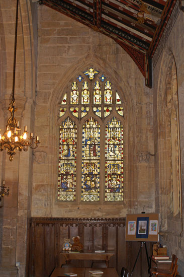 Above: The east window of the south aisle - one of the oldest parts of the church. Right Lower and Centre: The beautiful aisle ceiling.