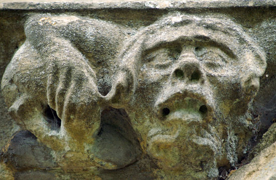 I now believe that the carvings on these friezes were the work of a guild of stonemasons probably based in Oakham. Some, but not all, of the masons within the Guild used a “mooning man” carving to announce their presence. The existence of a “mooner” at Brant Broughton - albeit one different in style from the others - has always bothered me. It is inconceivable that the Oakham guild operated so far from its home town: it is fifty miles from there to Brant Broughton. Yet Mooners are extremely unusual on church friezes (although less so on gargoyles). Is the one here a coincidence? I now know that it is not.
