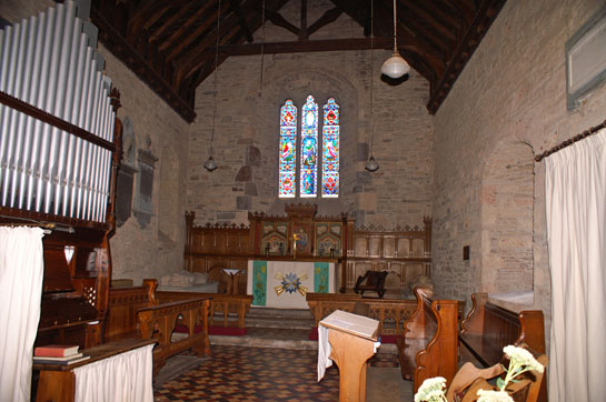 The early church was believed to have a central tower but this and the original chancel were destroyed, possibly in 1406 by Owain Glyndwr (1349-1416) who rebelled against Henry IV. Destruction, however, may be something of an overstatement since the Saxon south door to the chancel remains. What is totally inexplicable is why there is a pronounced kink between nave and chancel! The space left by the destruction of the tower seems to have been filled by an extension to the nave in distinctly unsympathetic fashion so that it sticks out like a sore thumb!