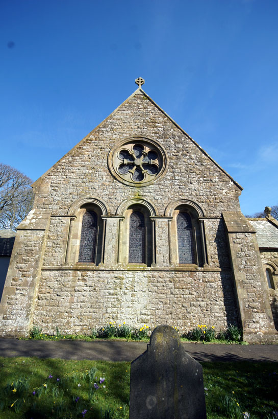 Bridekirk is just beyond the western fringe of the Lake District close to Cockermouth, There was a wooden church here but it was replaced by a Norman stone one in 1130. It became so dilapidated that it was demolished in 1868 and a new one built with its east end close to the west end of the old one. Some fragments of the old church’s chancel are still visible.