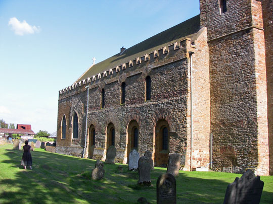 In the small Northamptonshire village of Brixworth, some twelve miles north of the county town. Stands what is incontrovertibly one of the most historically important buildings in England, and probably the most important seventh century building in northern Europe. Yet, you may well have never have heard of it! What do you see as you look at the church from the south (picture left)? An almost slab-sided south building with a rather over-high west tower, an ugly chapel and, as will see, shockingly incongruous battlements? Big but no beautiful, you might conclude.