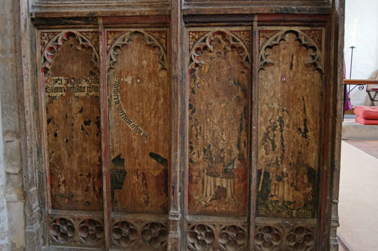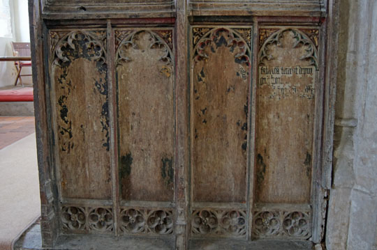 The two sides to the sadly-defaced original rood screen.