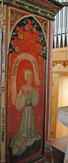 Johannis and Katherin Goldalle, the donors. The Church Guide comments that Joahannis was no saint himself: he was prosecuted with an accomplice in 1446 for stealing oysters from the salt marsh!