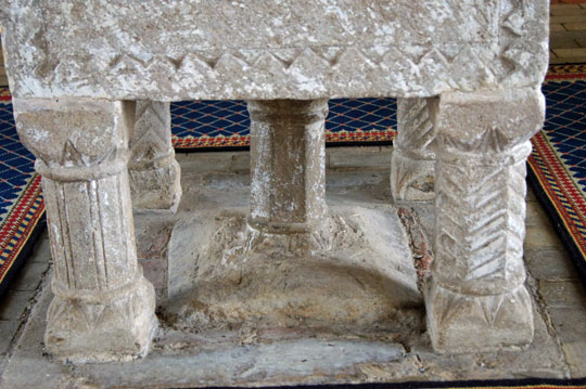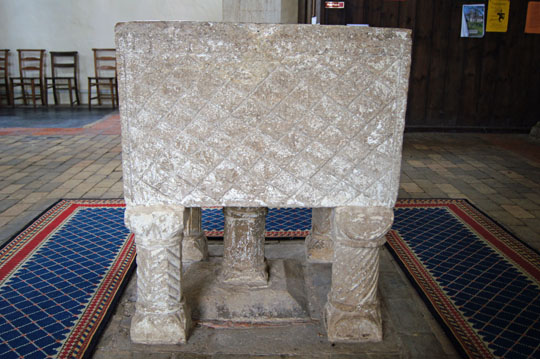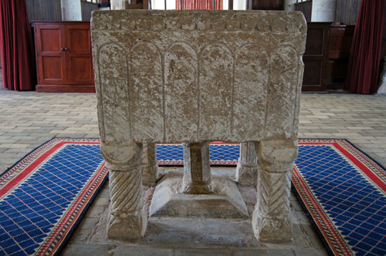 The font is much plainer than that at Burnham Norton. There are suggestions that the two were carved by the same mason, but I am mystified as to why anyone should think that other than because of their geographical proximity. Similarly, others talk of it as an a example of the North West Norfolk School of Norman fonts - which frankly leaves me incredulous. The only thing it has with them is that it is in North West Nofolk! All of the sides are of crude geometrical design, two of them with a simple zig-zag design at top and bottom. In some ways, the most interesting feature is the set of four original Norman legs. Burnham Norton gives pride of place to its font which is totally admirable because it represents 1000 years of unbroken history.
