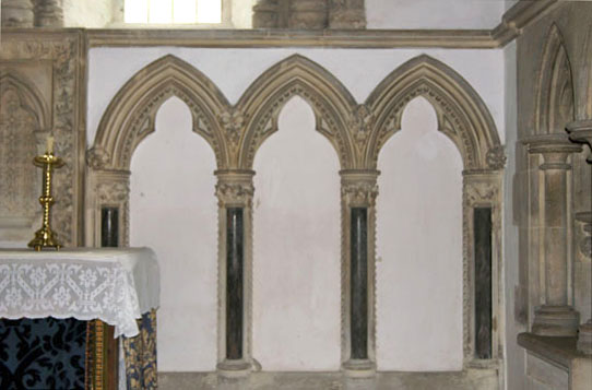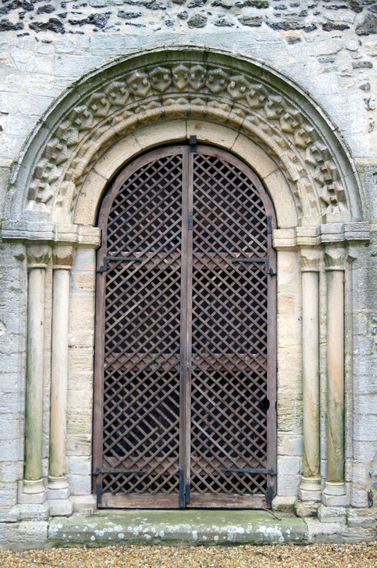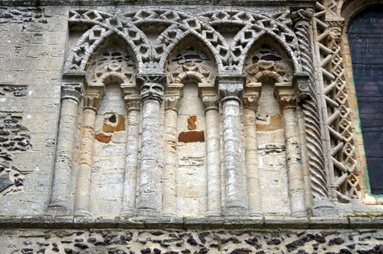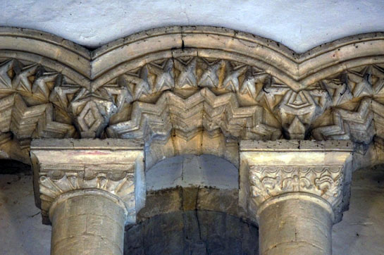 Left and Right: The two courses of Norman blind arcading. Apart from the fineness of the carving, note also the tight little arches set within the outer ones. They must have been a nightmare to carve so symmetrically. This whole composition has a very Moorish feel to it and is of the very highest quality.
