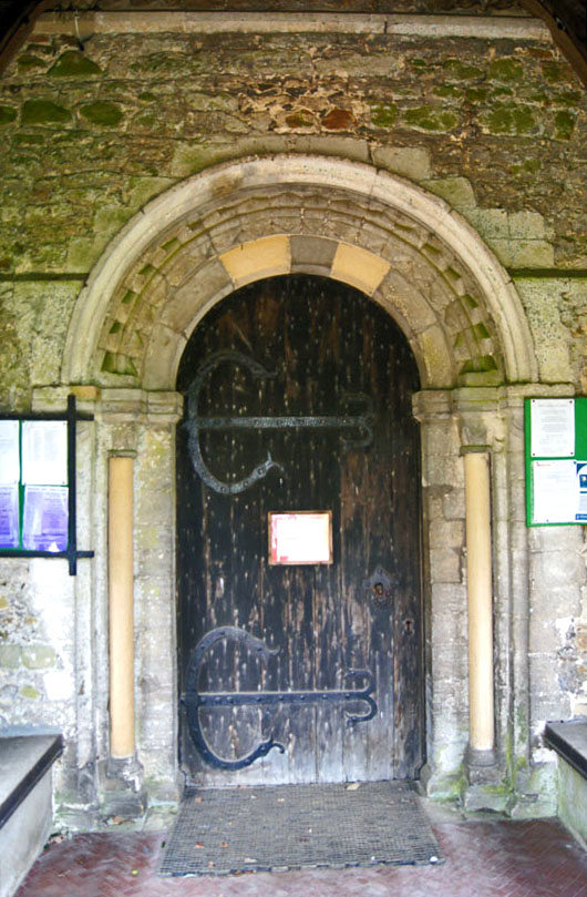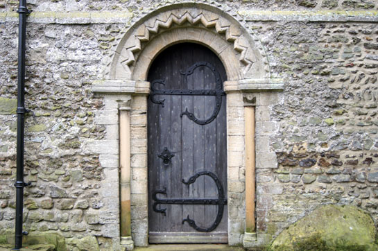 Left: The Norman north door which looks original, albeit with restored shafts. Right: More remnants of the earlier Norman church in the north wall.