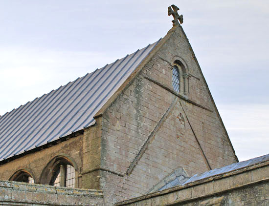 It is known that Viking raids had ruined the fabric of Castor Church by 1012. The Normans rebuilt the church, re-using some of the Saxon fabric especially for the nave, and it was re-dedicated on 17 April 1124. Some Anglo-Saxon long-and-short work survives on the north side. This re-building gave us the nave, the remarkable tower, most of the transepts and the capitals that we see today. Between 1220 and 1230 the South Aisle and chancel were replaced and the porch added. The chancel gained Early English lancet windows but the aisle arches remained almost round-headed, possibly to avoid complex changes to the church’s overall geometry in this “Transitional” (between Romanesque and Gothic) period of church architecture . We know that the Norman west door was blocked at this point and it is speculated that it was reconstructed as the present south door.