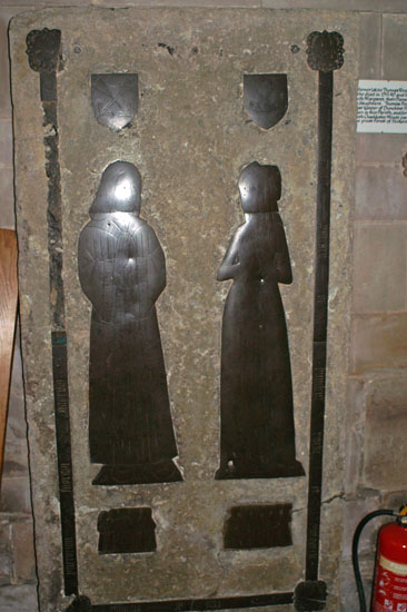 Sadly, the light from my flash has rather spoiled this picture of the brass effigies of Thomas and Margaret Forest. Originally in the nave floor it was moved to the east end of the south aisle during the 1863-4 restoration and then to the chancel in c20.