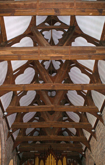 The chancel roof is modern, but of a very attractive design.