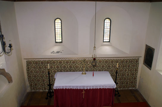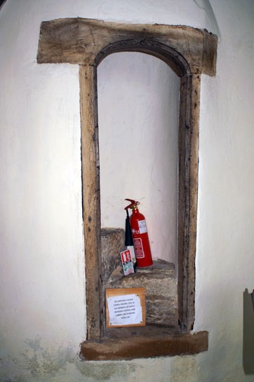In the west wall, visible both inside and out, there is an “orphaned” arch that Pevsner suggests is early thirteenth century, reinforcing the building’s likely turn of the twelfth century building date. There is no sign of there ever having been a tower so it looks as if this was an aborted project. The bell cote is modern.