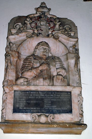 Left: There are very clear signs of old painting on the rood loft. Centre: The entrance to the rood stair. In most churches you will see only the top entrance/exit isolated and sticking out like a sore thumb with no stair and no rood screen to serve. Right: An alabaster monument to Brian Cooke (d.1653)