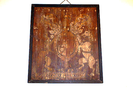 Left: The simplest of Norman tub fonts betraying a damp problem within the church. The Easter Sepulchre is in the background. Right: The arms of Charles I. For fairly obvious reasons these are not common. Apart from his early demise (!), these arms would not have been terribly fashionable during Cromwell’s Commonwealth! Again we can presumably attribute this to Coates’s isolation.