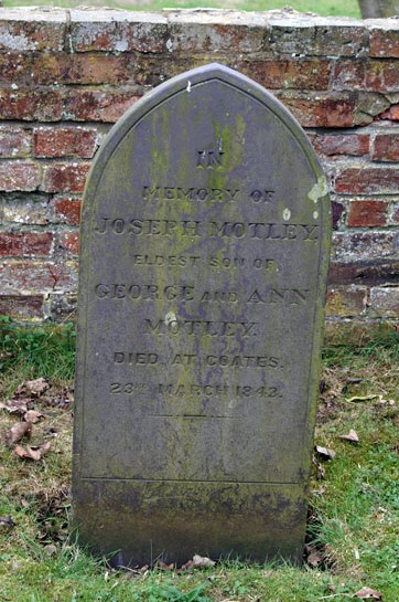 An extraordinary set of nine stone monuments to various deceased members of the Motley family between the 1830s and the 1890s.. They are more or less identical in geometry. Many lived and died in tiny Coates. A reminder, perhaps, of an age that could never have imagined the much-treasured “mobility” of our own era. Nor, one suspects, would they have envied us with our fractured and dispersed families.