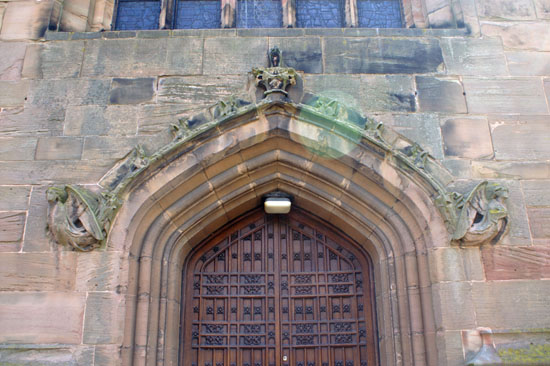 Left: We were shown this smaller stoup within the main font and were told what it was - I regret to say that I have forgotten! Right: The doorways have particularly fine and sophisticated label stops. The west door shown here has angels at both ends.