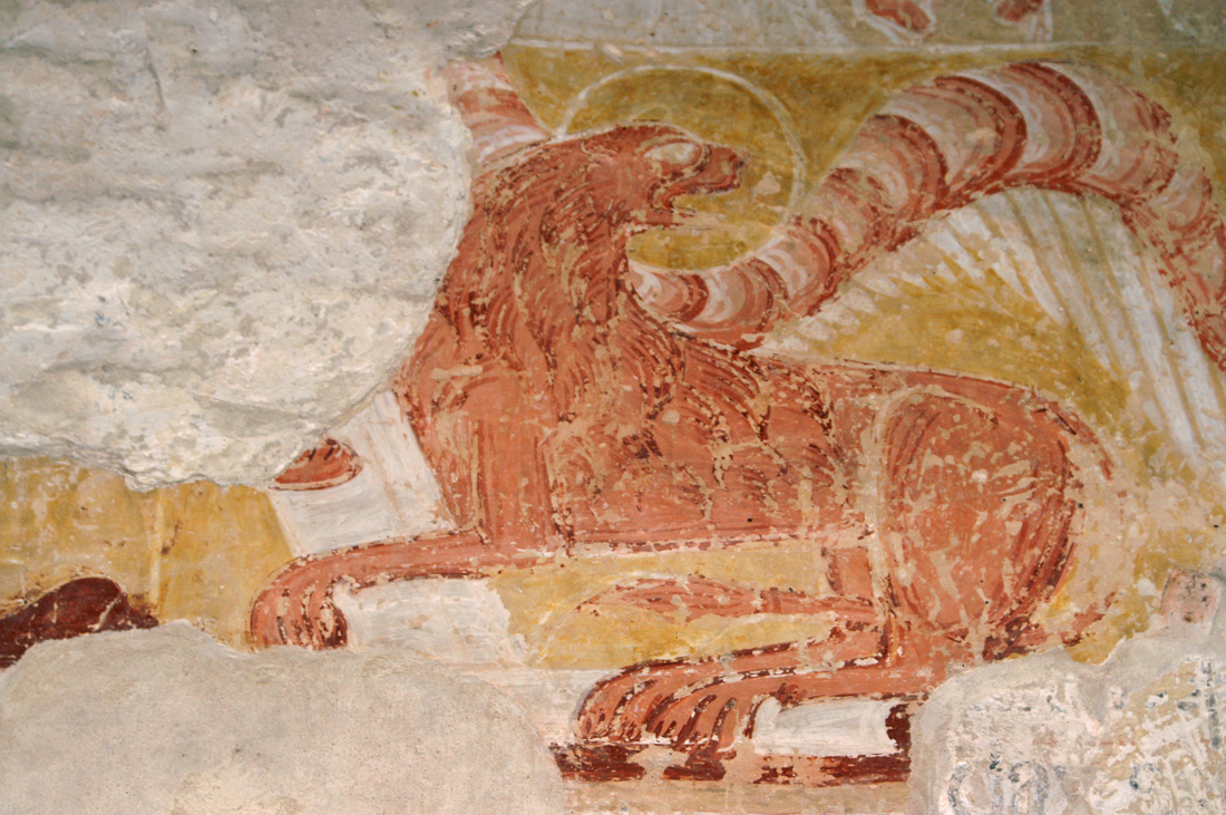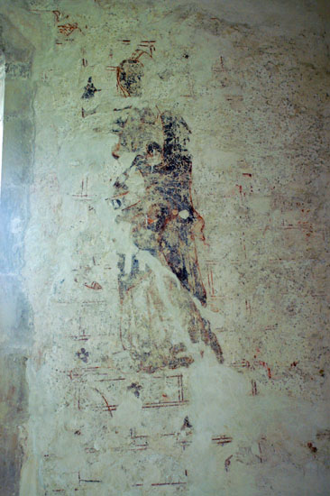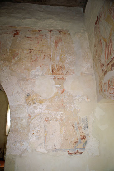 Just one of the ancient paintings on the south wall of the nave. Apart from the unusual size of the fragments in this church, there is also a wonderful range of colours to see.