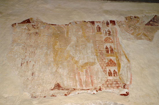 Just one of the ancient paintings on the south wall of the nave. Apart from the unusual size of the fragments in this church, there is also a wonderful range of colours to see.