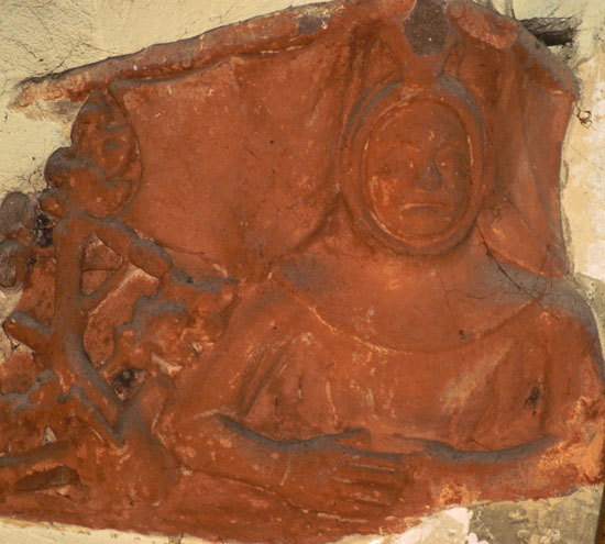 The font is not all that sets Crick apart, however. When the chancel was rebuilt during the Decorated period it was embellished internally with some very exuberant carvings at the ends of the window arches - window “stops” to be more technical . The nave roof corbels have further carvings. There is nothing restrained about these carvings: they are large and brash with a strong sense of mischief!