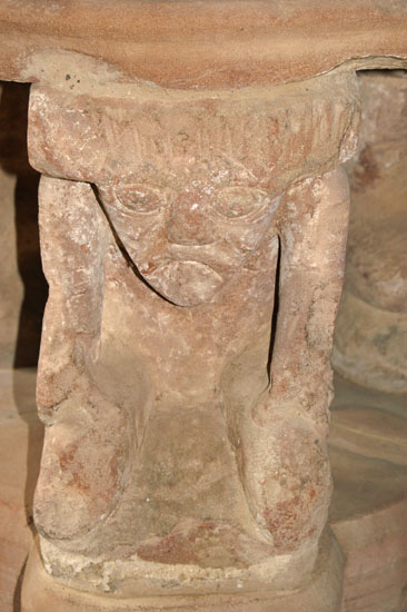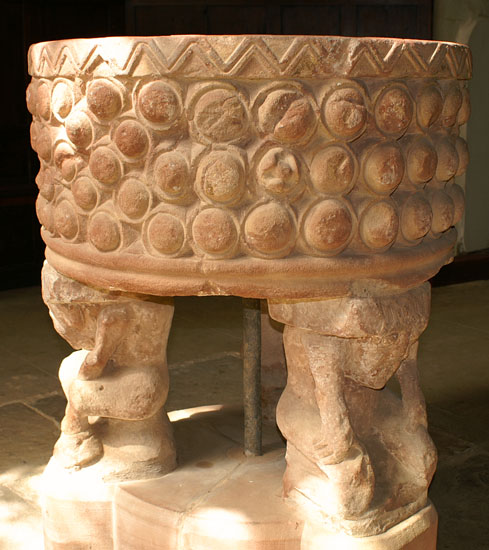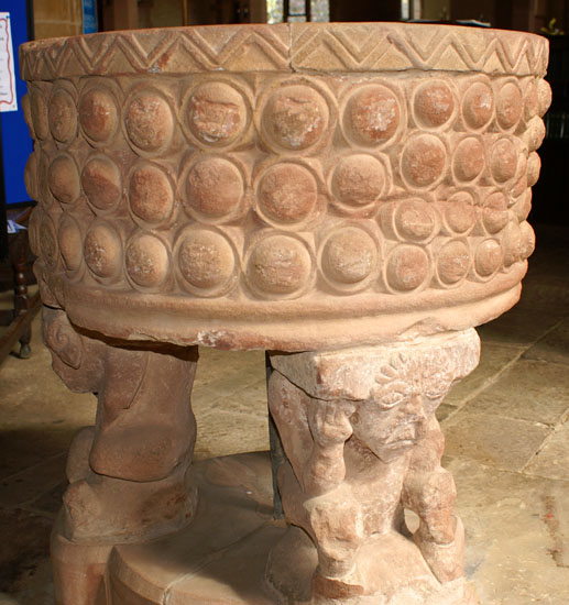 The Norman font with its peculiar and probably unique circles motifs and grotesque figures supporting it.