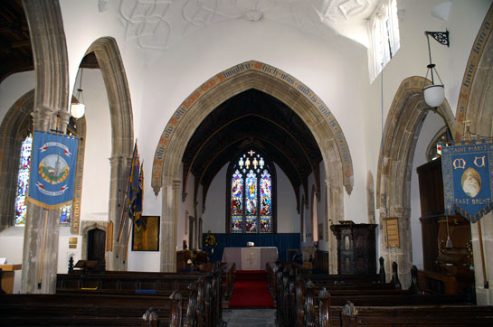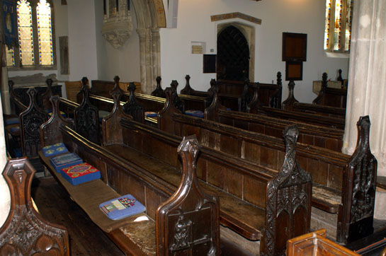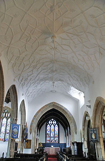 Left: Looking towards the east end. Right: The nave, looking towards the west end with its gallery. The Carolean ceiling is distinguished, to say the least. The north aisle is taller and more elegant than its southern counterpart and is likely, therefore, to be the earlier of the two.