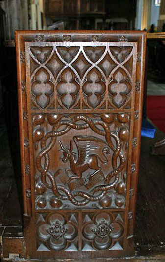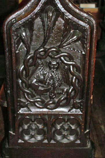 Above and Below: Various examples of bench end. It is interesting to compare these with those nearby Brent Knoll. The East Brent bench ends are all religious - slightly boring really! - whereas those at Brent Knoll include some deliciously satirical scenes, although many there are religious too. The two example top left looks to be more recent work to me and you will note that they have no “poppy heads” and are of different wood. Neither Simon Jenkins nor the Church Guide mention this. Note the fine interlaced carving around the central scenes - particularly the lovely example above right.