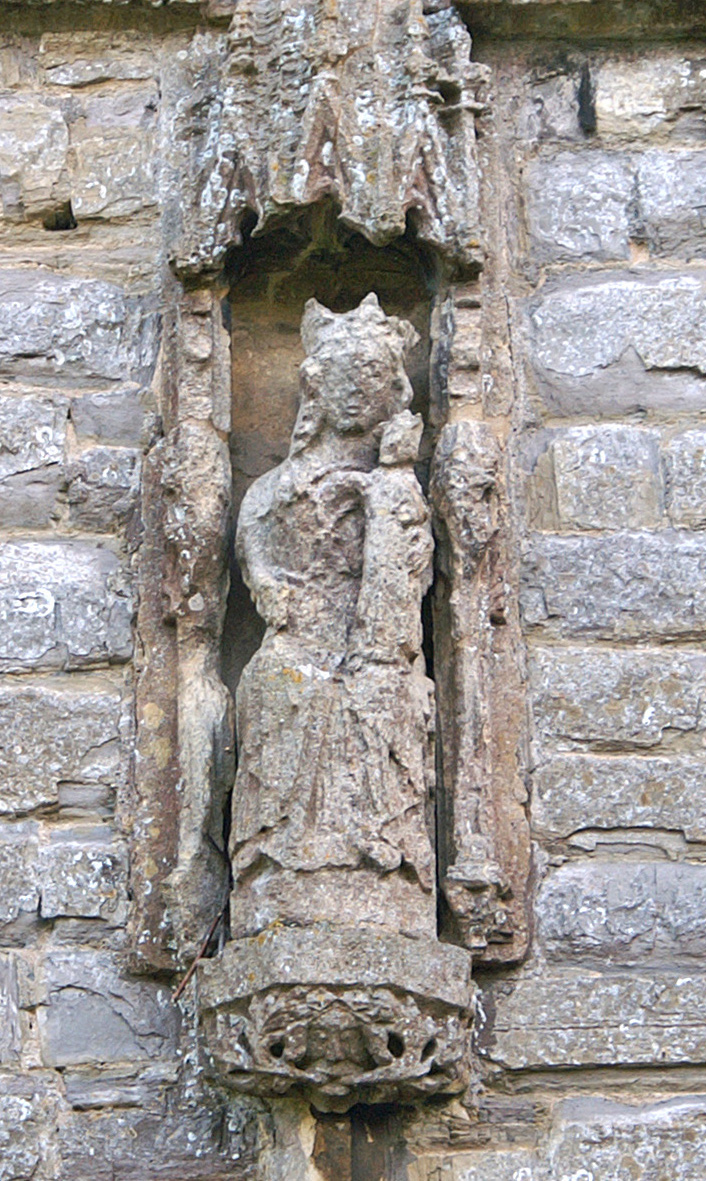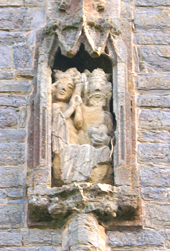 The three niche carvings on the west tower. They are quite clearly all carved by the same sculptor. Shown in ascending order they are: Left: The Virgin and Child Centre: The Trinity. Right: Christ crowning the Virgin Mary. Niche carvings were, of course, fair game for the iconoclasts of the Reformation and Commonwealth periods, so these are rare survivals. They are weathered but a surprising amount of detail remains and I think there is much to admire in the execution of these figures. The Virgin and Child image may seem stilted in its composition but note the fact that the mother holds the child close to her face. It is a human composition rather than one of the cliched “adoration” images beloved of Renaissance artists. Again, the figure of God in the central image is a human one that speaks of worldly worries. The coronation scene extends the humanity theme. I am enchanted by the way the sculptor has chosen not only to fill the niche but to rather to make it appear that the figures are standing within it, almost struggling to find space. I have to say that these three sculptures are amongst my favourites on English parish churches. Of course there are finer ones to be seen on the Cathedrals and Great Churches, but these at east Brent would have been carved by a man of much humbler origins. They are treasures.