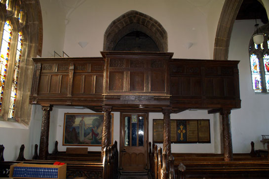 “Carolean” too, then was the west gallery which dates from 1635. It was originally part of the rood screen but moved to is present position in 1824. The carpenter found it not side enough and so inserted his own central section!
