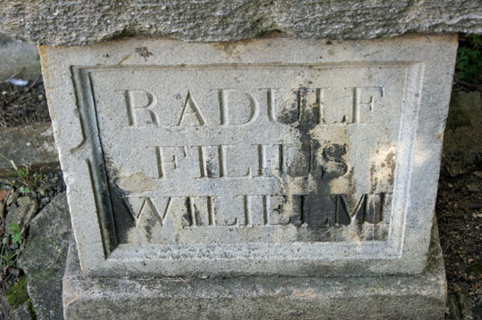 Finally, there is a stone cross at the west end of the church. It may be c12; it may be Anglo-Saxon; it certainly is no later. Its base, however, is inscribed with the name “Radulph Filius Wilelmi” It looks for all the world like a Roman inscription but is obviously much later than the cross itself. Who was he?